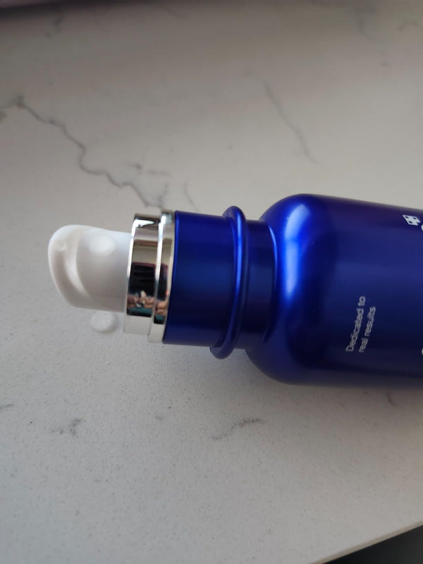 - Apply a small amount of the Exosome Shot to target areas (e.g. nose, cheeks, rough texture). Gently press and rub to help absorption.